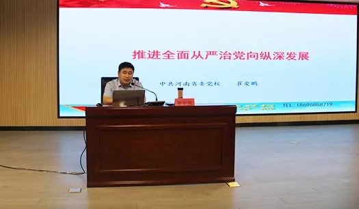 隨后,河南省委黨校崔愛鵬教授作了題為《推進全面從嚴治黨向縱深發展》的專題培訓。培訓中,崔愛鵬教授從深刻理解新時代全面從嚴治黨向縱深發展的重大意義、全面把握新時代黨的建設的總要求、貫徹落實習近平總書記關于全面從嚴治黨的重要論述三個方面進行了全面剖析和深入解讀,以史實為依據,深入淺出,娓娓道來,使大家充分認識到,“嚴”是立黨的初心品質,是治黨的鮮明特色,也是強黨的經驗優勢。堅持從嚴治黨,更是我們黨克服一切艱難險阻、完成歷史使命的重要政治優勢,為集團學習黨史、了解黨史,進一步做好黨風廉政建設和作風建設工作提供了指南。