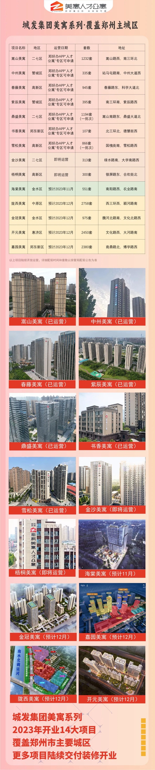 定于2023年9月25日08:00將房源上線“鄭州市保障性租賃住房(人才公寓)系統”進行配租。