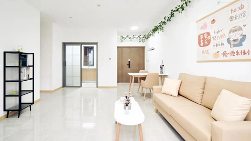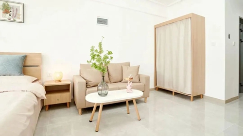 項目配備智能門鎖、獨立衛浴、床、衣柜、書桌、洗衣機、空調、冰箱、抽煙機、晾衣架等。