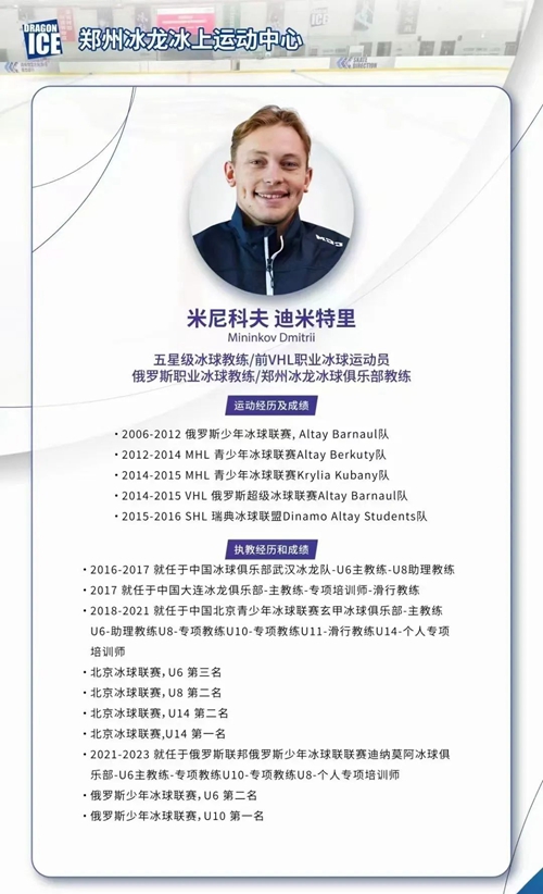 鄭州奧體冰龍冰上運動中心是一座現代化冰上訓練綜合場館。新年伊始,冰龍冰上運動中心迎來國際知名冰球教練米尼科夫·迪米特里,國家E級教練員趙鐵北、馬騰飛入駐,將通過豐富的執教經驗和專業知識,為河南冰雪運動注入鮮活動力!