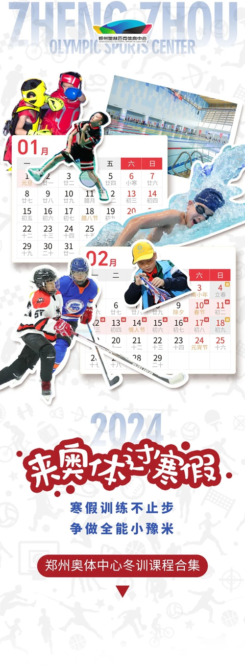 寒假即將到來,鄭州奧體中心特色冬令營火熱報課中,不僅有中招體育考試新寵——游泳,冰雪新勢力——冰球,航天科技夢——無人機,還有經典球類運動——籃球、羽毛球、乒乓球、網球,更有時尚體育——搏擊、跆拳道、輪滑……帶您一站式打卡全品類體育培訓課程!