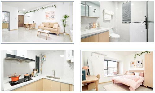 鄭州城發青山美寓位于管城區鄭新路東、漓江路南。本批次配租房屋共589套,其中210套經市政府批準定向整租,其中面積約36-54㎡的一室戶型587套,89㎡的兩室戶型1套,118㎡的三室戶型1套作為人才之家閱覽室。房屋租金價格區間為625-1371元/月;物業費2.6元/㎡/月,電費0.56元/度,水費4.5元/噸(如有變動按市政部門規定最新水、電費標準執行)。物業服務公司為河南興業物聯網管理科技有限公司。該項目精裝修設計交付,配備家具家電,拎包入住。