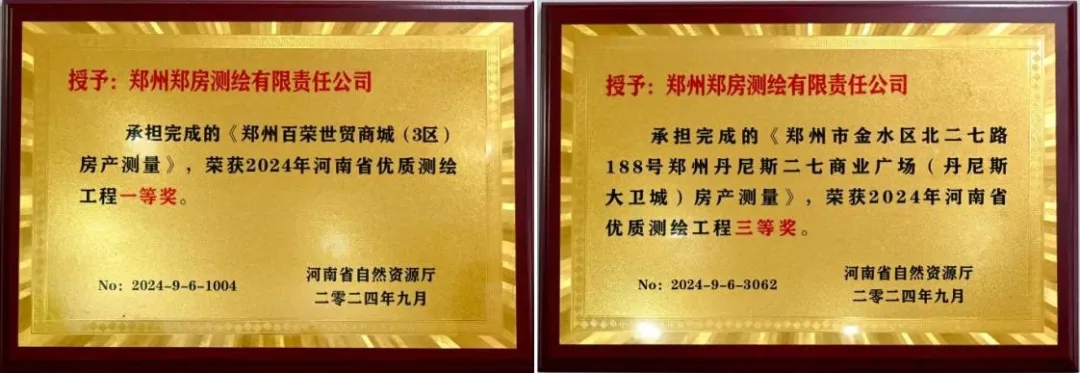 近日,河南省自然資源廳發(fā)布2024年“河南省優(yōu)質(zhì)測繪工程獎”評選結(jié)果,其中,鄭州鄭房測繪有限責(zé)任公司獲得“河南省優(yōu)質(zhì)測繪工程獎”一等獎1項(xiàng)、三等獎1項(xiàng)。