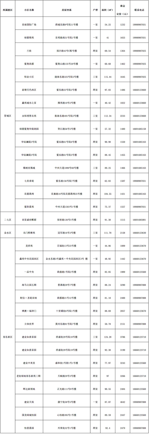 鄭州城發東華美寓位于中牟縣,和安街以西、仁川路以南。本批次配租房屋共約498套、1118間房源,其中面積約75-77㎡的一居室共約188套,122-167㎡的三居室共約310套,房屋租金價格區間為1008-1718元/月;電費0.56元/度,水費2.65元/噸,天然氣費2.63元/方,按階梯收費(如有變動按市政部門規定最新水、電、天然氣費標準執行)。該項目精裝修設計交付,配備家具家電,拎包入住。經市政府批準,部分房源已作為人才公寓配租,剩余空置房源依據保障性租賃住房要求進行配租。運營單位為鄭州城發安居有限公司,聯系電話:4001261666、16668123576。
