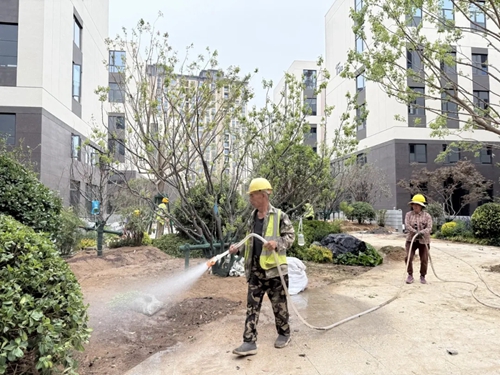 經過項目科學謀劃及不間斷搶工,城發·鄭開智慧產業園招商運營中心已投入使用。這個五月,產業園里建設正酣,一批次樓棟外立面已完成,建設工人正忙于園區景觀建設;二批次B18、B11外立面真石漆已完成,正在安裝窗框及玻璃。