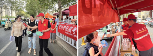 高考期間,鄭州持續(xù)高溫天氣,考生及陪考家長面臨酷暑考驗。為此,鄭州鄭房測繪有限責(zé)任公司攜手西流湖新時代文明實踐站,在“愛心助考點服務(wù)站”搭建愛心帳篷,配備充足的飲用水、扇子、應(yīng)急醫(yī)藥箱,并組織志愿者輪班值守,在酷暑天氣為考生和家長送上一份清涼。