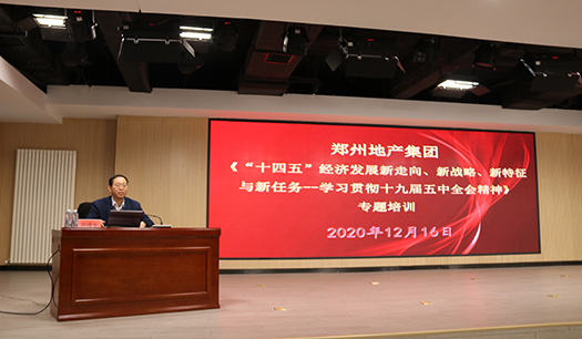 12月16日,為深入學習貫徹黨的十九屆五中全會精神,進一步統一思想、凝聚共識,集團黨委特邀河南省社會科學院院長、研究員谷建全,以《“十四五”經濟發展新走向、新戰略、新特征與新任務——學習貫徹十九屆五中全會精神》為題作專題培訓。集團領導班子成員、中層干部、基層員工及各子公司高管,共計150余人參加了培訓會。