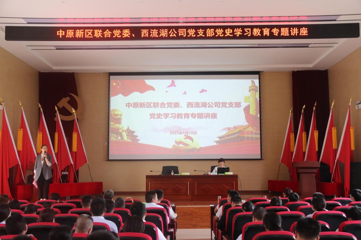 黨史是最好的教科書和營養劑,在中國共產黨成立100周年之際,為扎實開展好黨史學習教育,引導廣大黨員干部職工知史愛黨、知史愛國,進一步樹牢“四個意識”、堅定“四個自信”、做到“兩個維護,推動黨史學習教育取得實效,5月19日下午,中原新區聯合黨委、西流湖公司黨支部邀請河南省委黨校黨史教研部副主任、副教授楚向紅老師開展黨史學習教育專題講座。公司領導班子、西流湖公司、鄭地發展以及中原新區聯合黨委黨員職工代表共計150余人參加講座。