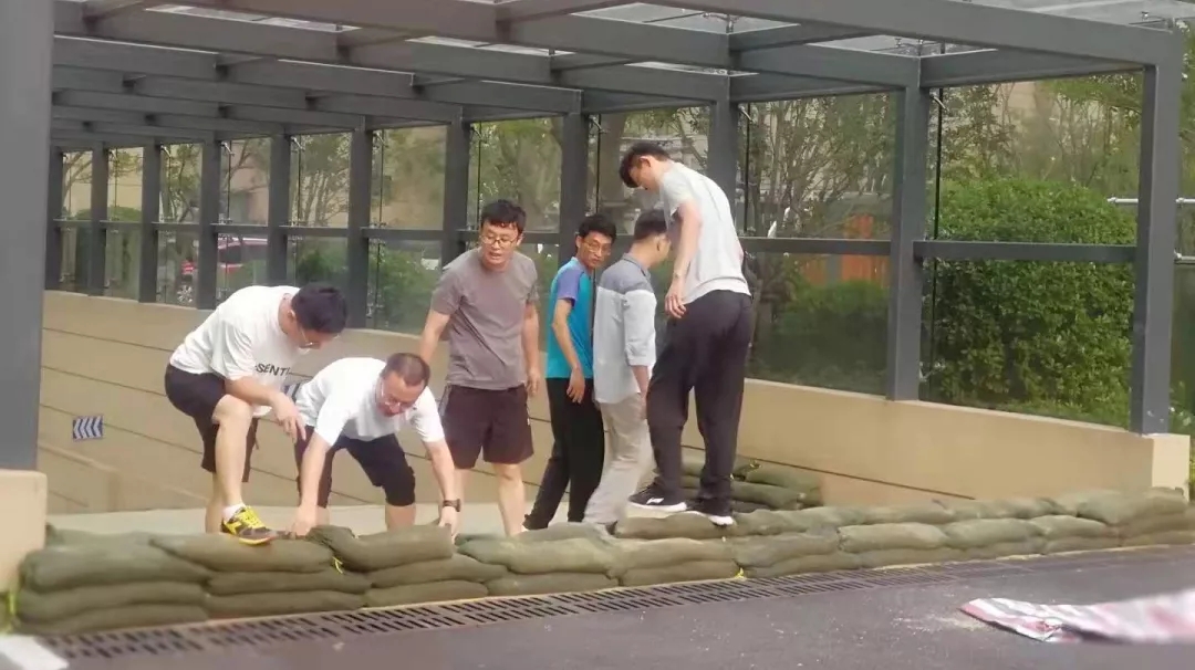 8月21日下午,接到公司關于提前、周密、高標準備戰(zhàn)抗洪搶險救災工作的通知。戰(zhàn)天斗地的鄭地商都人敢于斗爭、善于斗爭,厲兵秣馬戰(zhàn)水魔。有的搬運沙袋,有的運輸擋水板,有的封堵門口和地庫門。深夜12點、凌晨3點,面對分批運送至公司的近700條沙袋,商都抗洪搶險救災應急小分隊心往一處想,勁往一處使,團結(jié)一致將沙袋擺放至指定位置,充分顯示了鄭地商都控股公司戰(zhàn)勝水魔的強大戰(zhàn)斗力。
