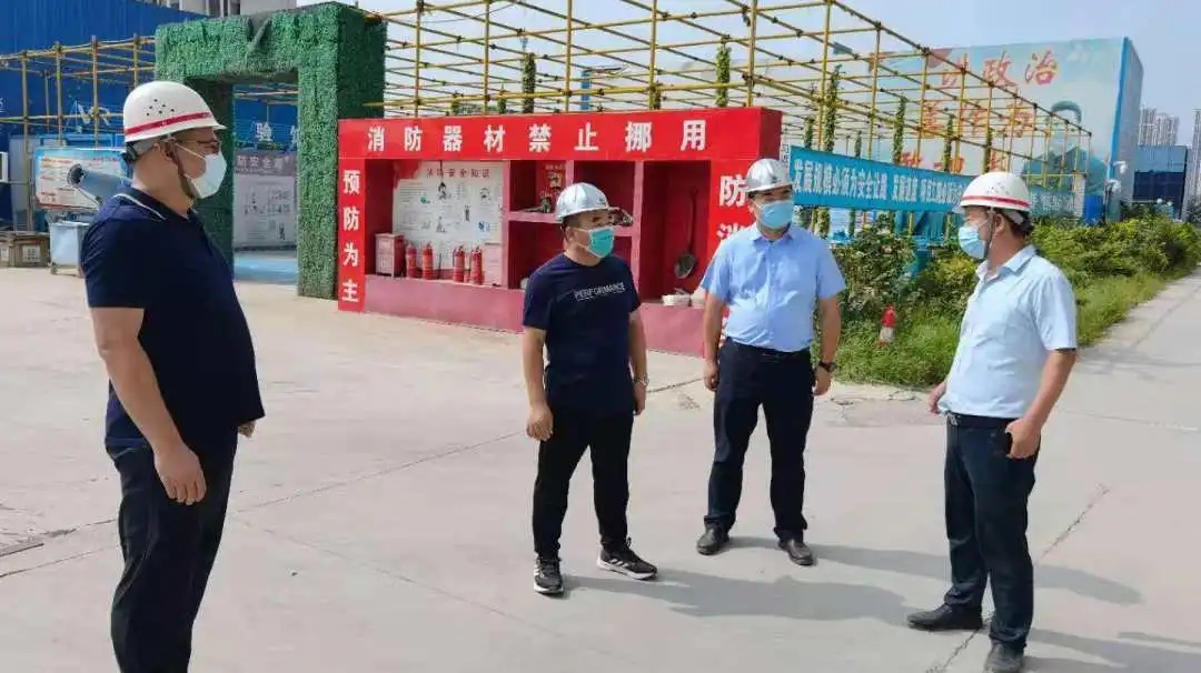 在鄭州地產(chǎn)集團西流湖公司中原新區(qū)安置房項目現(xiàn)場,公司負責人帶領施工單位等有關人員全方位檢查防汛工作,詳細詢問防汛救災物資儲備、汛情預警信息響應機制以及施工人員安全保障等各項工作,嚴令要不留死角和隱患,領導同志要當好稱職守門員,合格守夜人,科學統(tǒng)籌防汛力量,以果斷果敢之勇,繡花功夫之智,鑄就防汛抗洪的銅墻鐵壁。