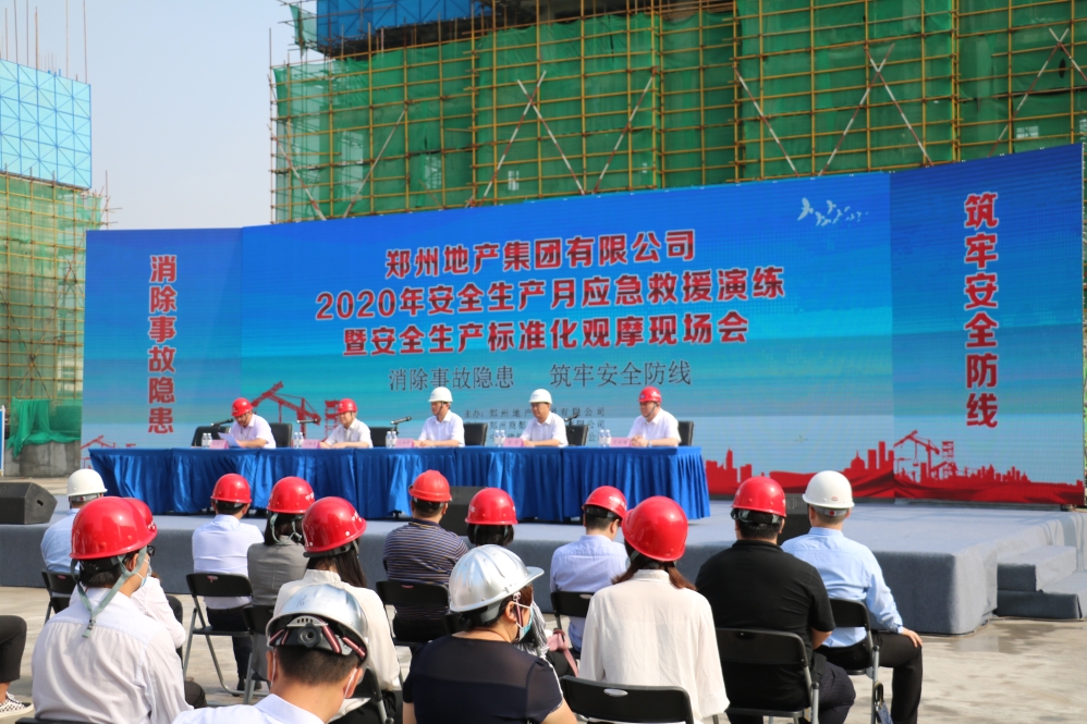 2020年6月18日,由鄭州地產集團主辦、商都控股集團承辦的“安全生產月”應急救援演練暨安全生產標準化觀摩活動,在商城佳苑項目圓滿舉辦。圍繞 “消除事故隱患,筑牢安全防線”主題,現場開展了高空墜落、防汛應急演練、安全墻簽名、宣傳片觀影等系列活動,集團9家子公司及項目參建監理、施工單位共計200余人參加本次現場觀摩會。