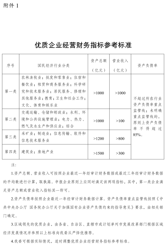 (二)主要經營財務指標應處于行業或區域領先地位(附件1)。