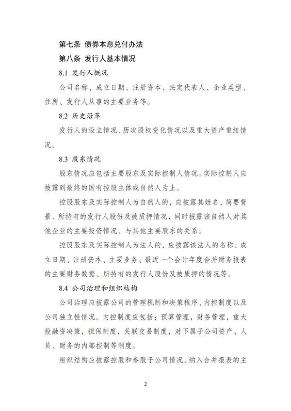 (二)發行人應按照監管部門和交易場所的規定,在存續期內定期披露財務情況、經營情況、募集資金使用情況、項目進展情況等相關信息。如存續期內變更募集資金用途或發生其他對債券持有人權益有重大影響的事項,應符合相關法律法規和政策要求,按照有關規定或約定履行程序,并及時公告。
